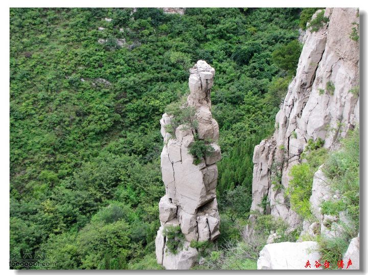 在夹谷台l层与2层悬崖之间,及底层崖根处,分布着大量山洞,有夹谷洞、朝阳洞、心洞、大瓮洞、阁老洞、大、小鬼洞、石窗户等30余条山洞。洞深在15米至80米不等,最深为心洞80余米。登上夹谷台可以说是洞群的世界。