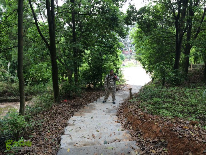 上到公路不远处,就看到了6公里的公路里程石碑。车辆川流不息,公路两边被倒弃了很多垃圾,还有丢弃死猪,一路上的臭气,让人难以忍受!幸亏是路途不远,到了小公园,从广告牌后面的机耕道上山,顺着机耕道走,看到军事禁地的标牌,一直向上走,即到了废弃的共军营房和防空洞以及碉堡,沿着防火带向前走,到了状元岭无字牌坊,再向上走就是国军碉堡。共军和国军的碉堡相同之处,都是附近有许多战豪和大坑,但随着时间的推移和雨水的冲涮,这些豪沟和大坑都快填没了。
