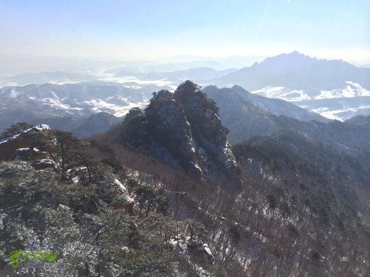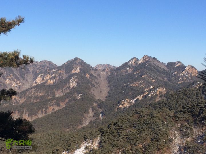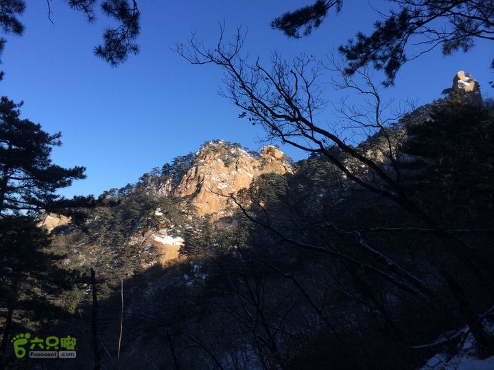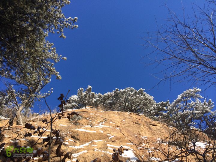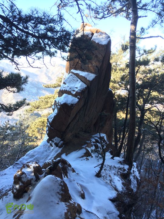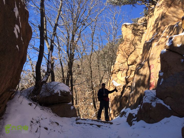 从太和门上山,在山腰穿行,因为雪后岩面滑,始终没上山顶的岩面,绕过老祖峰的南面后,经过双雄峰,到达双泉峰的树林开阔地,赏雪景,登仙人台后,继续前行,经望仙峰、仙亭峰、仙霞关、金钢峰、通明峰,下山,大安寺进午餐,到大安寺后山的罗汉洞,经璎珞峰的后面,东北前行。因为,这次计划过大安寺后走一走仙人台景区的东南侧的最远的山梁,因此,坚持一个原则,不下山、不进沟,坚持在山梁上走,中间有几次都要切到中会寺的沟里,都返了上来。继续!经过石龙庵、玲珑洞,最后下到上庄子村,沿着公路到积翠门。