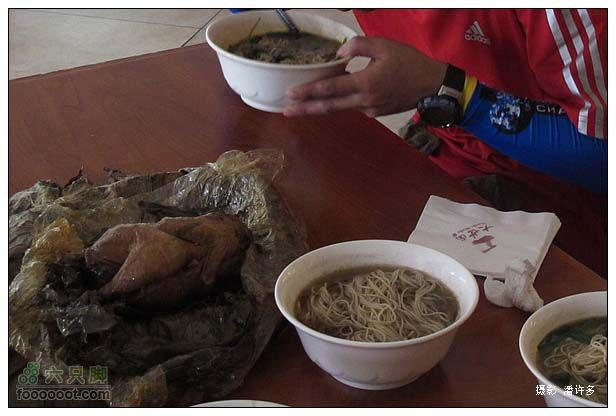 常熟市区很整洁,人也不多,欧尚、乐购、百盛,都是一些熟悉的商店,生活在这里应该是既舒适又便捷的。到了常熟我们直奔王四酒家,这是强哥的推荐,王四酒家的叫化鸡很有名气。本来打算在王四酒家大吃一顿的,可惜只有我们三个人,吃起来也没什么气氛,还是在旁边的面馆解决中饭更合适。但是叫化鸡是一定要尝尝的,潘许多进酒家打探了一下,不一会儿,拎回来一只叫化鸡。在面馆要了三份最贵的本山野蕈面,就到外面处理叫化鸡,敲开黄泥,解开草绳,剥开里三层外三层的荷叶、保鲜膜、荷叶,一只叫化鸡安祥地躺在里面,泛着黯淡的油光,冒着腾腾的热气。不等我们用相机记录下来,行者就扯下它的大腿,把它大卸八块了,转眼之间就把叫化鸡和野蕈面扫个精光。觉得都偏咸了一点,味精也没少放。
