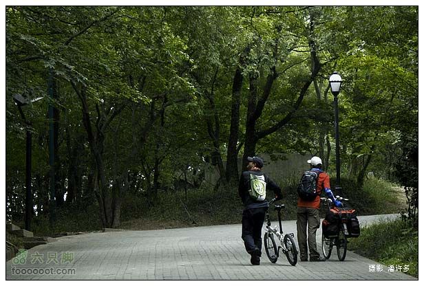 虞山中路禁止自行车骑行,其实山路较陡,也没法骑,推着自行车上坡,感觉很累。山里绿树荫荫,看不出外面,只能欣赏这满眼的绿意。前面是一段依山而建的城墙,穿过城门虞山门,继续前行,到了藏海寺附近,大概走了山路的一半,路被拦住了,过去要买15元的门票。按理门票不算贵,但是我着推着车沿路过,也没打算游玩景点,这门票买了岂非不太合算了,还是原路返回吧,省下的钱可以再吃碗本山野蕈面呢。这就算游了半座虞山吧。