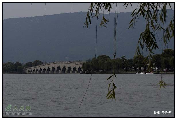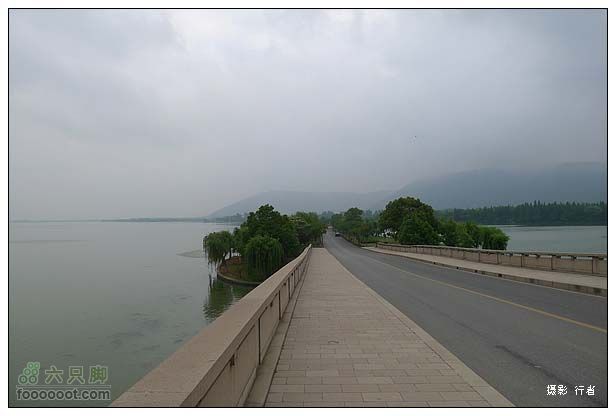 三下五除二把东西收拾好,打包装车,回到尚湖景区门口,洗刷刷之后,吃几块昨天剩下的饼干打个底,今天打算先到市里吃早饭,然后就往回骑,在双凤吃中饭。从环湖南路,沿着长堤往虞山方向骑行,前面是一座多孔的拱桥——串月桥。