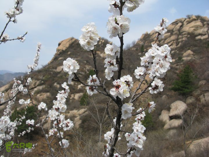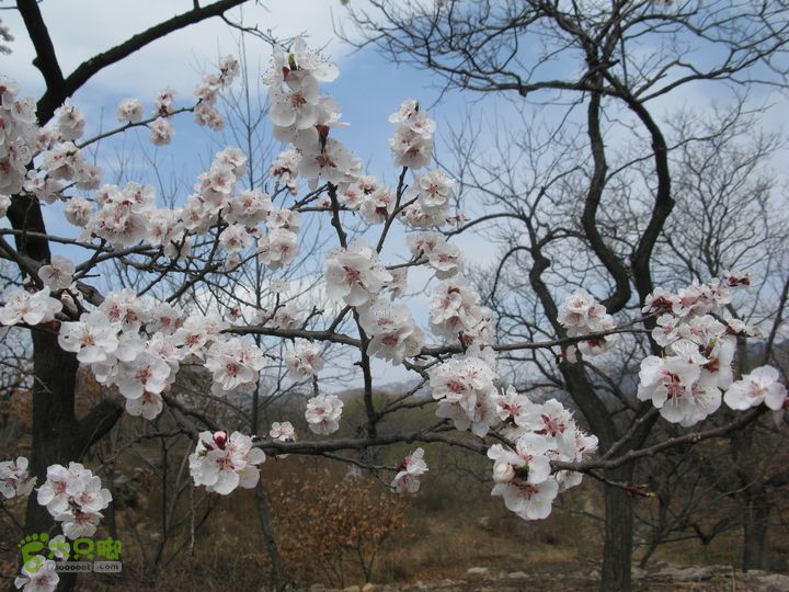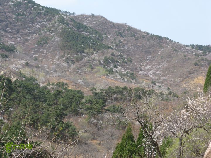 今天赏花不尽人意。从望宝川到湖门一路只有零零散散的花树,没有成片的漫山遍野的花。直到东水峪村东比较高的山腰以上还有一些成片的花树。不像我前年今日看到的漫山遍野花开盛景。听圈圈说,两星期前来时到处都是山花,现在花落已长出叶子啦。晚上回家看Google Earth,卫星地图是今年3月25日的,放大看,漫山遍野都是白白的花树。看来以后在3月底到4月上旬必须关注花期。