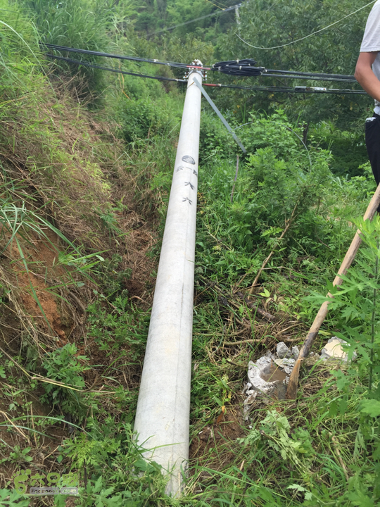 因雨水过大山体滑坡导致凤庆至云县六十六号杆断裂需更换电杆